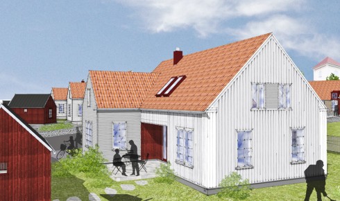 I småstadsidyllen Fjärås Bygger Derome Bostad AB 14 st kedjehus med frånluftsvärmepumpar. Alig levererar.